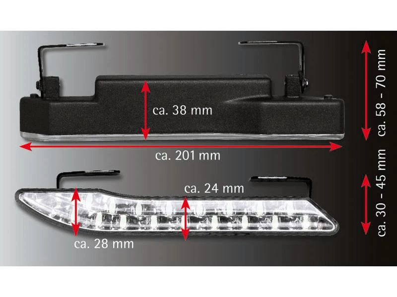 Das LK 18 Tagfahrlicht, mit einer Leistungsaufnahme von 7 W, hat eine automatische An-, Aus-Dimmfunktion, und hat eine Steuerungselektronik integriert. Dank den kompakten Abmessungen passt sich das LK 18 optimal an den Stossfänger an.