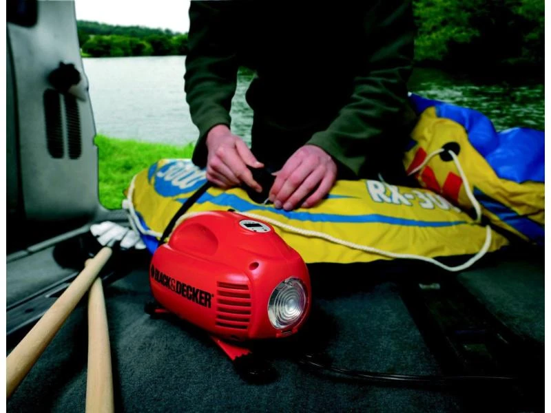 Der ASI200 von BLACK+DECKER ist ein kleiner Kompressor, der über die 12-V-Buchse am Fahrzeug betrieben wird. Somit ist er ideal als Notfallpumpe für Autoreifen geeignet, kann aber auch als einfache Pumpe für Bälle oder Luftmatratzen verwendet werden. Das Kabel und der Luftschlauch mit Autoreifenventil sind platzsparend im Gerät untergebracht, genauso wie die Zubehörteile für Sportgeräte, mit denen sich auch Bälle aufpumpen lassen.