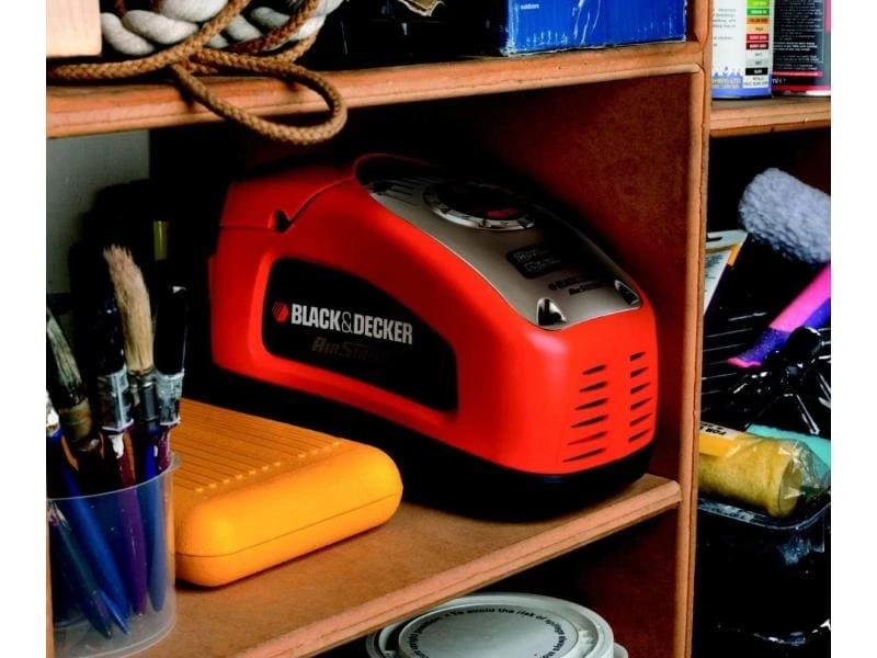 Der ASI300 von BLACK+DECKER ist ein kompakter Kompressor, der über die 12-V-Buchse am Fahrzeug über den Zigarettenanzünder oder mit 220 V Hausstrom betrieben werden kann. Dadurch ergeben sich vielfältige Möglichkeiten der Anwendungen, wie für Autoreifen, Luftmatratzen, Bälle und vieles mehr. Der Kompressor kann einen Luftdruck von bis zu 11 bar oder 160 PSI aufbauen.