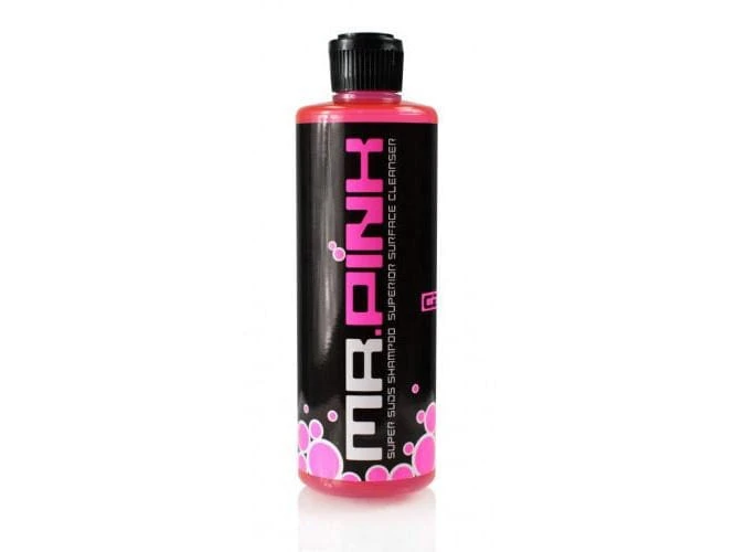 Das Chemical Guys Mr.Pink Shampoo ist ein sehr ergiebiges und kraftvolles Autoshampoo für die regelmässige Pflege. Es wirkt effektiv, schmutzlösend und entwickelt einen dichten Schaum. Es kann mit einer Schaum-Kanone verwendet werden oder ist auch für die Handwäsche geeignet. Das Produkt ist pH-neutral und hinterlässt keinerlei Schlieren oder andere Rückstände. Es ist zudem leicht abzuspülen und dennoch hoch konzentriert. Daher ist es auch empfehlenswert, das Reinigungsprodukt mit Wasser zu verdünnen.