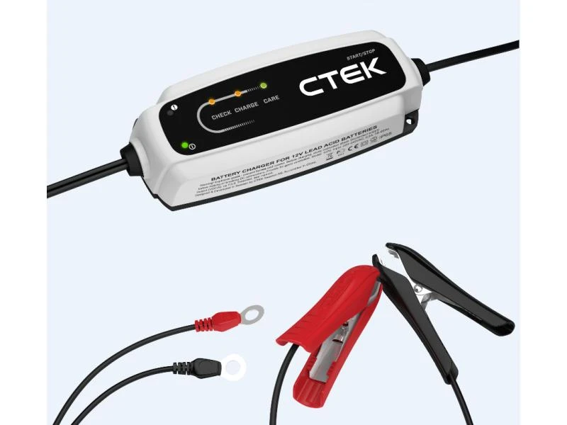 Der Anschluss des Ladegerätes kann wahlweise über Polklemmen an der Batterie oder einen fest im Motorraum installierten «Comfort Connect»-Verbinder erfolgen. Danach müssen Sie das CT5 Start Stop nur in eine Netzsteckdose einstecken. Den Rest erledigt die Elektronik selbsttätig. Zudem ist das Ladegerät rückspannungsgesichert, kurzschlussfest und sprüht beim Anschliessen keine Funken.