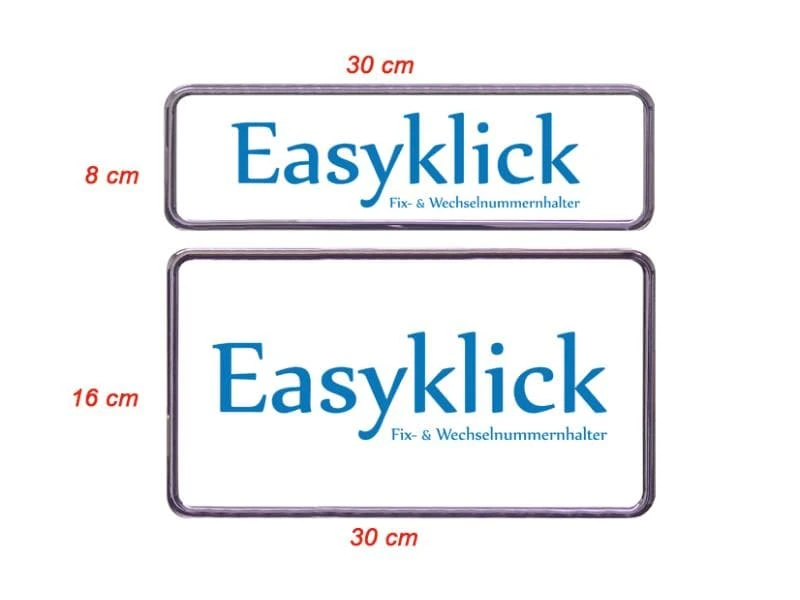 Statten Sie Ihr Fahrzeug mit den Kennzeichenhaltern von EASYKLICK aus. Sie verfügen über einen Rahmen aus ABS in Chromoptik und sind mit einem praktischen Klicksystem ausgestattet.