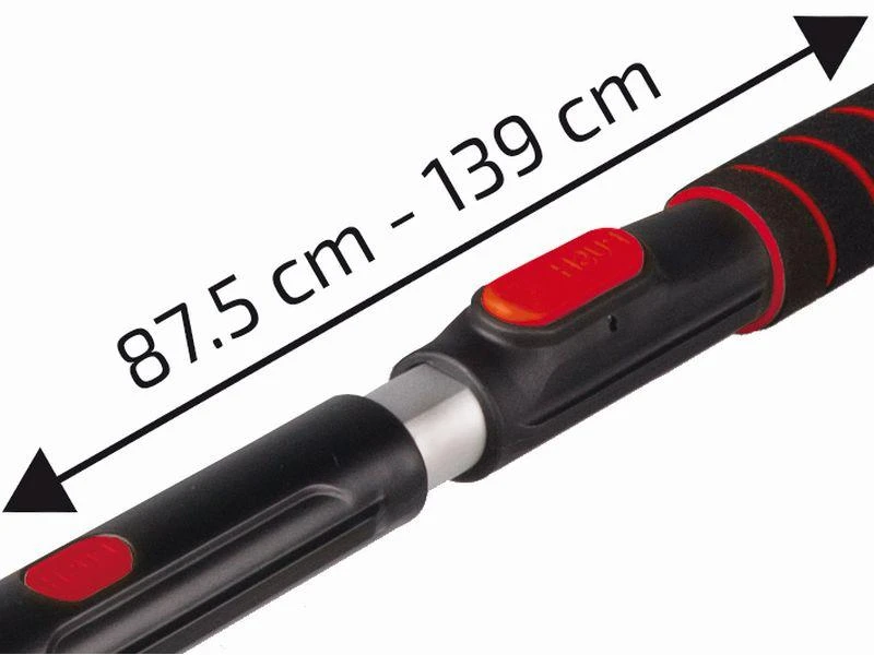 - Aluminium Teleskopstiel (87.50 cm – 139 cm) mit Softgrip für warme Hände