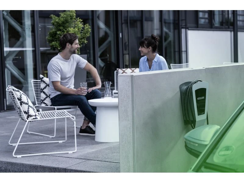 Wallbox Home Eco fest an der Wand installiert. Sie kann