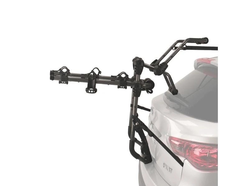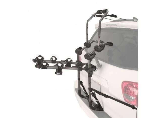 Der neue Over-the-Top Fahrradträger von Hollywood Racks verfügt über einen in der Höhe verstellbaren Rahmen, so kann der Gurtkontakt mit dem Spoiler verhindert werden. Inklusive abnehmbarer Haken und Sicherheitsschnallen zur sicheren Befestigung an Kofferraum, Glasklappen und Dachträgerschienen. Passt auch für die meisten Fahrzeuge ohne Heckspoiler.
