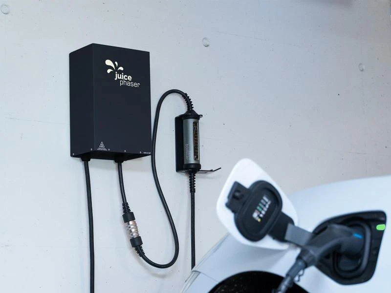 Einphasige Elektroautos fast doppelt so schnell laden: Statt bisher maximal 3,7 kW kann mit dem JUICE PHASER 5,8 kW geladen werden – bei nur 16 Ampere Netzbelastung.