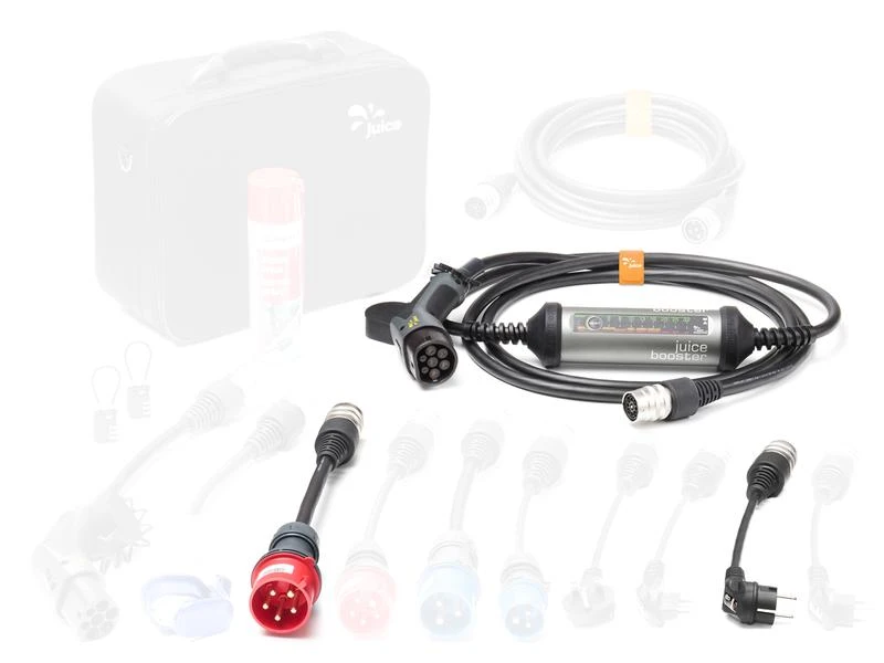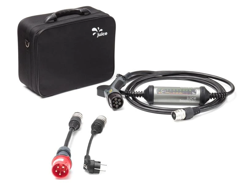 Der Juice Booster 2 von juice technology ist ein besonders vielseitig einsetzbares Ladekabel für Elektroautos oder elektrisch betriebene Töffs mit Typ-2 -Ladeanschluss. Mit seiner Ausgangsleistung von bis zu 22 kW laden Sie Ihr E-Mobil immer schnellstmöglich auf – und das an praktisch jeder Steckdose. Dank speziell konstruierter Anschlussadapter und der umfangreichen Sicherheitsausstattung ist eine Fehlbedienung ausgeschlossen. Zudem ist das Kabel besonders robust, zugleich jedoch leicht und kompakt.