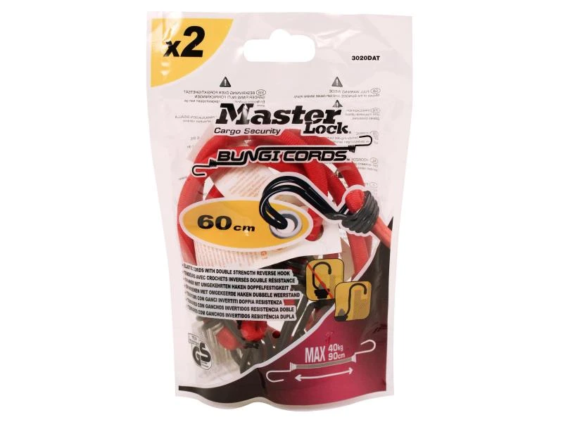 Die Gummispannseile Twin Wire mit entgegengesetzten Haken von Masterlock eignen sich unter anderem zum Befestigen sperriger und schwerer Waren auf Sackkarren. Sie bieten die doppelte Kraft eines herkömmlichen Bungeeseils und die abgerundeten Haken beugen dem Zerkratzen empfindlicher Oberflächen beim Befestigen vor. Die Spannseile bieten Ihnen dabei eine Zurrkraft von je 40 kg.