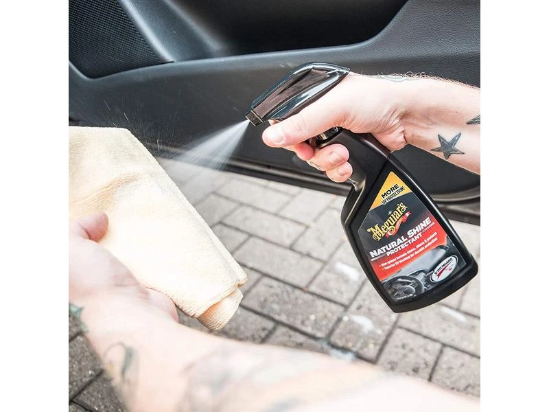 Mit Natural Shine wirken Armaturenbretter, Verkleidungen, Vinyl- und Gummioberflächen wie neu. Der Spray hinterlässt keinen Film oder Spiegeleffekt. Die enthaltenen Reinigungskomponenten entfernen Schmutz und Staub, während der UV-Schutz die behandelten Oberflächen vor schädlichen Sonnenstrahlen schützt.