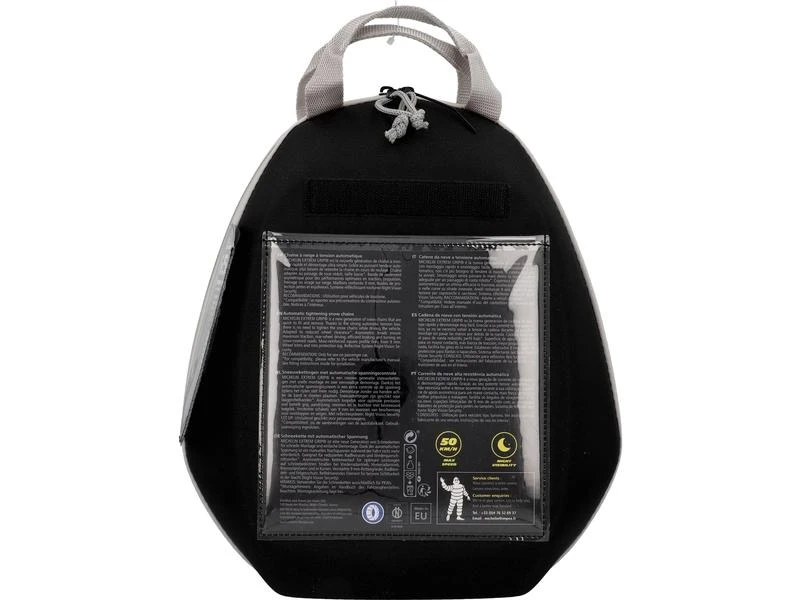 Erlaubt sicheres Fahrverhalten bei winterlichen Bedingungen. Dank der automatischen Spannung ist ein manuelles Nachspannen während der Fahrt nicht mehr erforderlich. Schnelle und einfache Montage und Demontage. Selbstsichernde Ratsche und verstärkt.