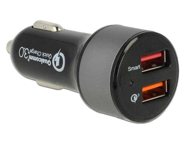 Diesen Ladeadapter können Sie mit praktisch jeder Pkw-Bordspannungssteckdose (Zigarettenanzünder) verwenden, um zwei schnelle Lademöglichkeiten für Ihre Smartphones, Tablets und andere Geräte zu erhalten. Beide USB-Ladeanschlüsse kommen im normalen Typ-A-Formfaktor. Einer unterstützt QuickCharge 3.0 und kann seinen Output (sofern kompatibel) dem angeschlossenen Gerät anpassen, um dieses bis zu 4x schneller aufzuladen. Der zweite USB-Port stellt bis zu 2,4 A mit intelligenter Ladetechnik für konventionelle Geräte zur Verfügung. Eine Reihe von Sicherheitsmechanismen schützt die Geräte vor Beschädigungen durch Überstrom, Kurzschluss und ähnlichem.