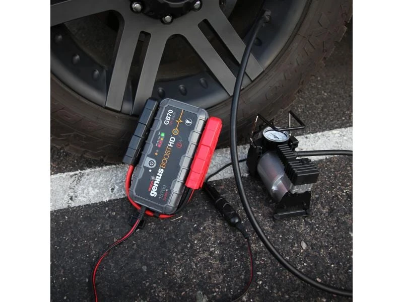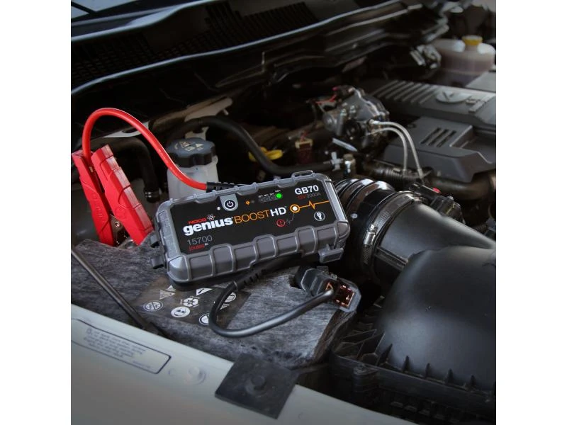Dank des Noco Genius GB70 ist eine leere Startbatterie künftig kein Grund mehr, den Weg ins Geschäft mit dem ÖV antreten zu müssen oder einen Techniker des Automobilclubs aufzubieten. Auch auf die Starthilfe durch hilfsbereite Mitmenschen sind Sie in einer solchen Situation nicht mehr angewiesen: Verbinden Sie einfach die Starthilfe-Klemmen mit den entsprechenden Punkten Ihres Fahrzeuges und starten Sie wie gewohnt den Motor.