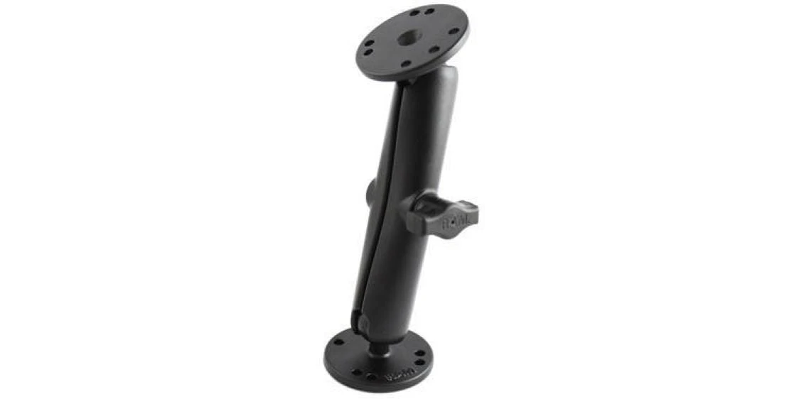 Das Halterungssystem vom «RAM Mount» ist modular aufgebaut. Jede Halterung besteht aus einer Basis (Base), einem Arm und einem Kopfteil (Top). Je nach Halterung werden diese miteinander verschraubt, meist aber über ein Kugelgelenk zusammengesteckt. Dies bietet Flexibilität in der Ausrichtung, sorgt aber zusammen mit dem Material für einen schock- und vibrationsdämpfenden Effekt.