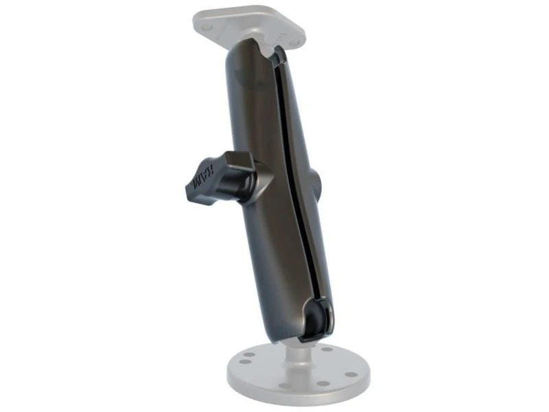 Das Halterungssystem vom «RAM Mount» ist modular aufgebaut. Jede Halterung besteht aus einer Basis (Base), einem Arm und einem Kopfteil (Top). Je nach Halterung werden diese miteinander verschraubt, meist aber über ein Kugelgelenk zusammengesteckt. Dies bietet Flexibilität in der Ausrichtung, sorgt aber zusammen mit dem Material für einen schock- und vibrationsdämpfenden Effekt.
