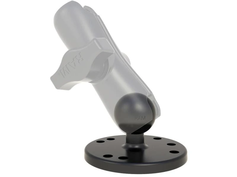 Das Halterungssystem vom «RAM Mount» ist modular aufgebaut. Jede Halterung besteht aus einer Basis (Base), einem Arm und einem Kopfteil (Top). Je nach Halterung werden diese miteinander verschraubt, meist aber über ein Kugelgelenk zusammengesteckt. Dies bietet Flexibilität in der Ausrichtung, sorgt aber zusammen mit dem Material für einen schock- und vibrationsdämpfenden Effekt.