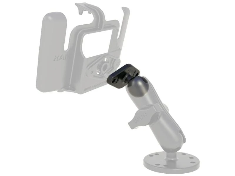 Das Halterungssystem vom «RAM Mount» ist modular aufgebaut. Jede Halterung besteht aus einer Basis (Base), einem Arm und einem Kopfteil (Top). Je nach Halterung werden diese miteinander verschraubt, meist aber über ein Kugelgelenk zusammengesteckt. Dies bietet Flexibilität in der Ausrichtung, sorgt aber zusammen mit dem Material für einen schock- und vibrationsdämpfenden Effekt.