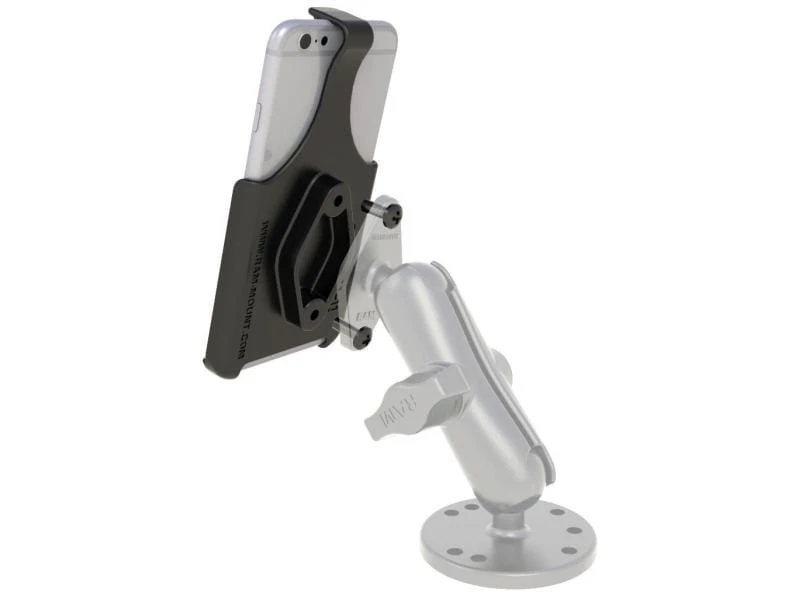 Das Halterungssystem vom «RAM Mount» ist modular aufgebaut. Jede Halterung besteht aus einer Basis (Base), einem Arm und einem Kopfteil (Top). Je nach Halterung werden diese miteinander verschraubt, meist aber über ein Kugelgelenk zusammengesteckt. Dies bietet Flexibilität in der Ausrichtung, sorgt aber zusammen mit dem Material für einen schock- und vibrationsdämpfenden Effekt.