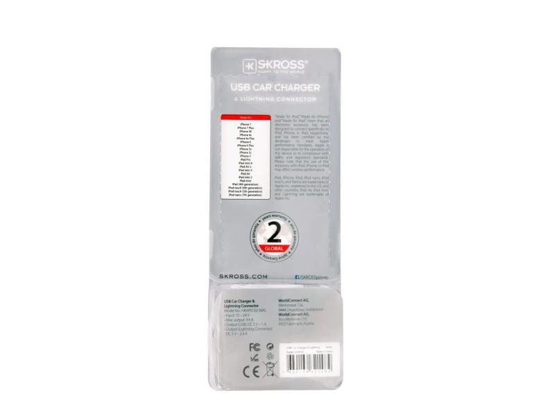 Der USB Car Charger & Lightning Connector von SKROSS® ist so kraftvoll, dass er unterwegs für immer volle Akkus der neuesten iOS-Geräte und aller anderen USB-Geräte sorgt.