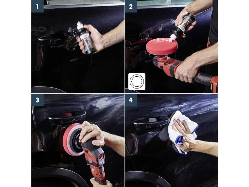 Hoch effektive Schleifpaste für den Lackfinishbereich. Ideal bei stark verwitterten oder angeschliffenen Lackschichten. Entfernt Kratzer sowie Einschlüsse von Reparaturlackierungen, glättet Schrammen und entfernt Lacksprühnebel. Beseitigt Schleifriefen von Schleifpapier P1000 und feiner. Dank der innovativen Low Dust Technology staubarm im Einsatz. Schleifleistung: 6 / Glanzgrad: 4