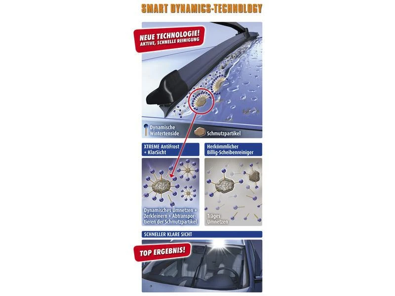 Das Sonax Xtreme AntiFrost und Klarsicht ist ein gebrauchsfertiges Reinigungsmittel für die Scheibenwaschanlage Ihres Autos im Winter. Dank «Smart Dynamics»-Technologie verfügt es über eine besonders hohe Reinigungskraft und überzeugt durch seine schnelle Schlierenbeseitigung. So benötigen Sie weniger Wischtakte und profitieren von einem verringerten Verbrauch. Speziell entwickelte, leistungsstarke Reinigungstenside vermindern die Oberflächenspannung des Wassers innerhalb kürzester Zeit. Der Schmutz kann jetzt in Sekundenbruchteilen umnetzt, zerkleinert und entfernt werden. Zudem ist das Sonax Xtreme AntiFrost und Klarsicht fächerdüsengeeignet, absolut lack- sowie kunststoffverträglich und hält Gummi geschmeidig. Die umweltfreundliche Verpackung benötigt 70% weniger Material und ist so einfach und kostengünstig zu entsorgen.