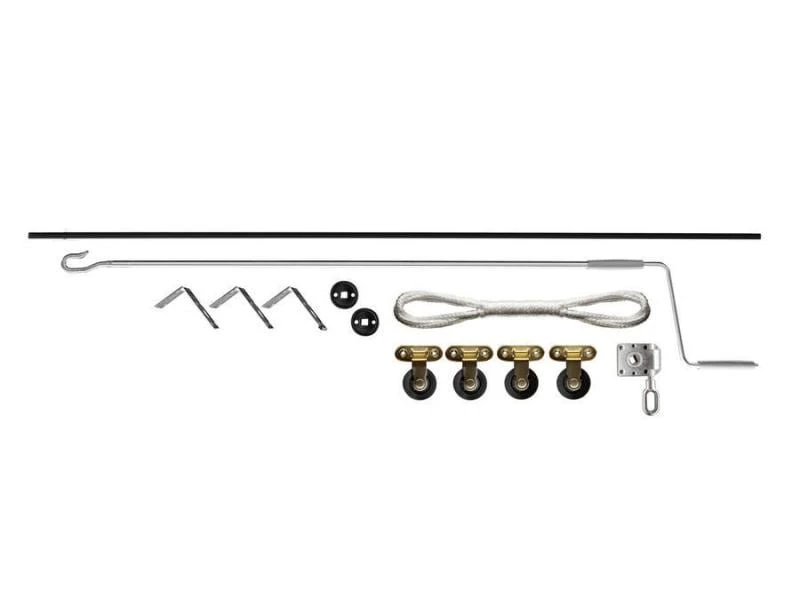 An einem Haltebügel werden die tragenden Seile mithilfe einer manuellen Kurbel aufgewickelt. Der Haltebügel vereinfacht das Anheben der Last. Zudem verläuft jedes Seil über eine eigene Umlenkrolle, wodurch das Gewicht gleichmässig gehoben werden kann. Gleichzeitig verteilt sich die Last auf eine grössere Fläche der Decke. Mit dem Multilift 572 kann so eine Last von bis zu 100 kg gehalten werden. Die Kurbel kann nach dem Anheben/Absenken Ihrer Dachbox abgenommen werden und beiseitegestellt werden.