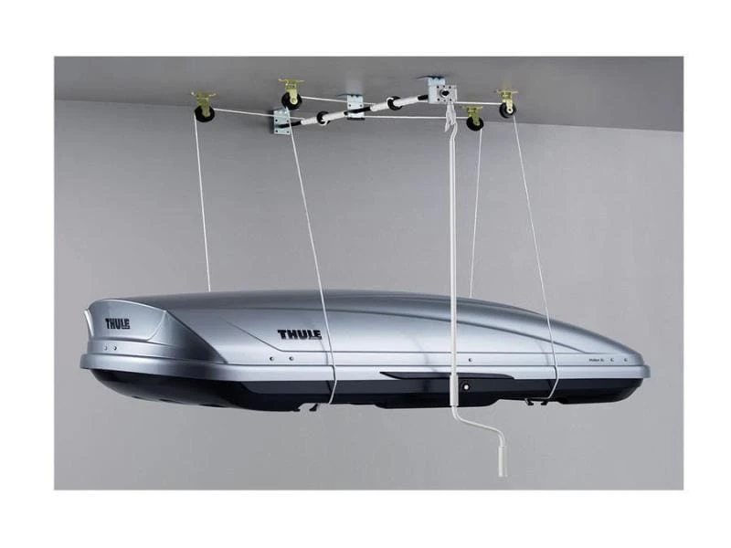 Der Multilift 572 bietet eine platzsparende Lösung für die Lagerung Ihrer Dachbox. Das System kann genauso für die Lagerung von Surfbrettern oder Kajaks eingesetzt werden.