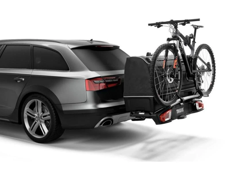 Leichte und robuste Cargo Box für das Heck Ihres Fahrzeugs, wodurch Ihre gesamte Ausrüstung gut erreichbar bleibt. Die hochwertige Cargo Box bietet einen zusätzlichen, leicht zugänglichen Stauraum von 300 Litern, genug Platz etwa für zwei Golftaschen oder einen Thule Chariot Multisport Anhänger. Der Thule BackSpace XT Bike Arm und Thule VeloSpace XT Bike Adapter ermöglichen den Transport eines Fahrrads zusammen mit der Thule BackSpace XT Cargo Box (separat als Zubehör erhältlich).