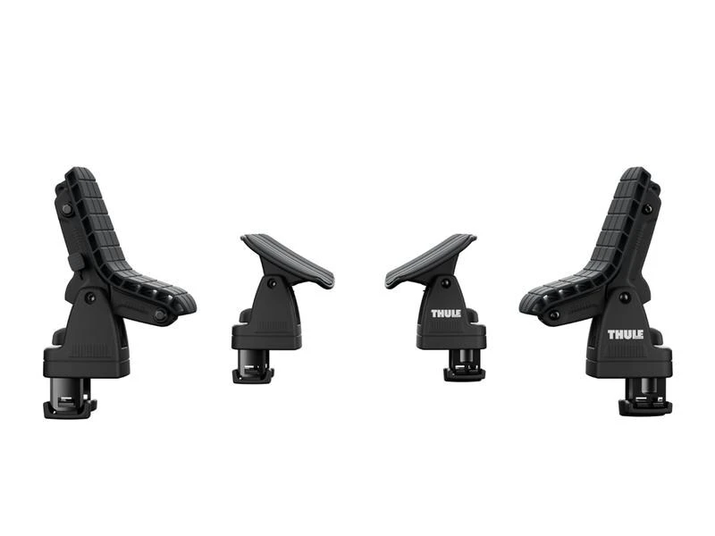 Flexibler Träger für Kajaks mit filzbezogenen Sätteln, die das Auf- und Abladen erleichtern. Durch die hinteren filzbeschichteten Sättel, die beim Positionieren und Zentrieren des Kajaks auf dem Autodach helfen, kann das Kajak mühelos auf- und abgeladen werden. Durch zwei unabhängig voneinander drehbare vordere Sättel mit Hebel zur Winkelverstellung eignet sich der Träger für alle Formen von Kajakrümpfen.