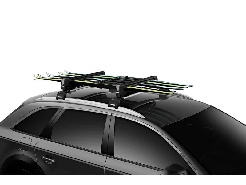 Der SnowPack Extender 7325 von Thule ist ein Skiträger, für den auch hohe Bindungen kein Problem darstellen. Die erhöhte Auflagefläche verhindert, dass erhöhte Skibindungen das Fahrzeugdach beschädigen. Zudem schützen weiche Gummipolster Ihre Skier und Snowboards während des Transports. Das Be- und Entladen ist dank ausziehbarer Träger besonders einfach. Ausserdem ist das Öffnen dank grosser Taste auch mit Handschuhen komfortabel. Auf der Ladefläche finden bis zu fünf Paar Skier oder 2 Snowboards Platz.