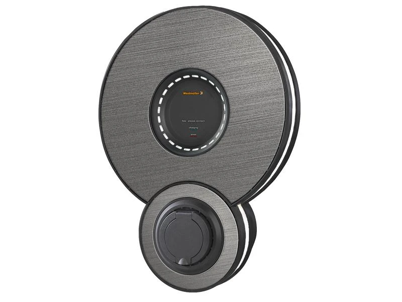 Wallbox mit optionaler Designblende. Steckerverriegelung und automatischer Steckerentriegelung bei Stromausfall. Weiter Schützklebedetektierung, allpolige Abschaltung im Fehlerfall.